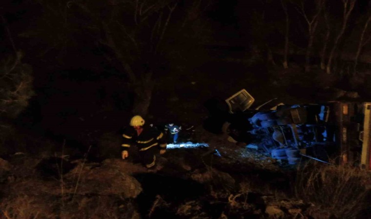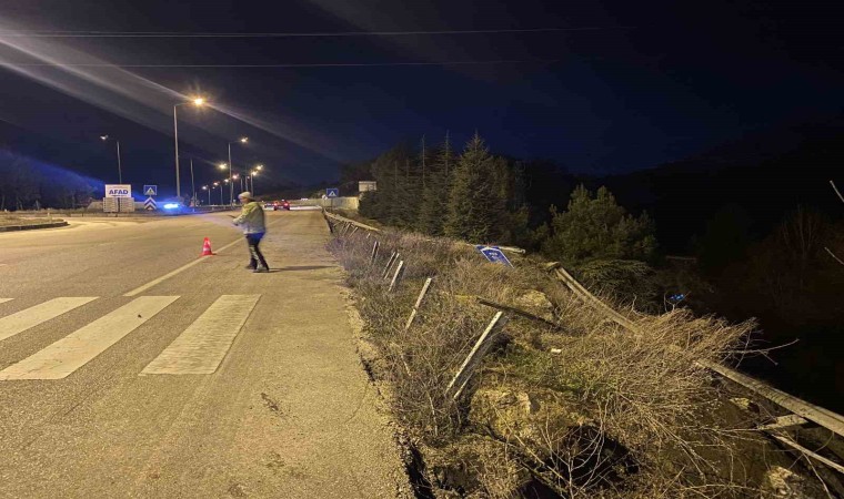 Burdur-Antalya karayoluna Büğdüz istikametinden yokuş aşağı inerken virajı alamayan kamyonun bariyerleri kırarak şarampole uçması sonucu 1 kişi yaralandı.