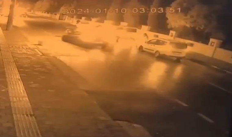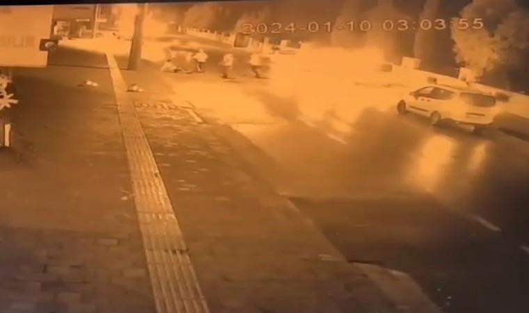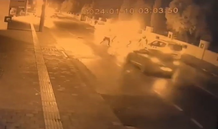 Öte yandan olay anı güvenlik kameralarına saniye saniye yansıdı. Görüntülerde uygulama yapan polis memurlarının araç yaklaştığı sırada trafik dubasını yolun ortasına doğru attığı ve aracın önüne geçirerek durdurmaya çalıştığı görülüyor. Ardından aracın durmayıp ilerlemeye devam ettiği görüntülerin devamında trafik polislerine çarpması ve memurlardan birisinin metrelerce savrulması yer aldı.