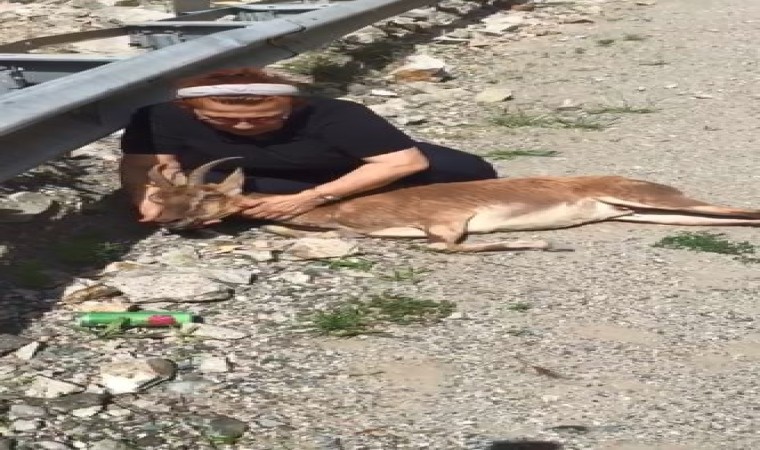 Artvin’de otomobille köylerine doğru seyahat eden Emine ve Ali Rıza Büyükdağ çifti, Deriner 2 Tüneli çıkışında yol kenarında bir dağ keçisi gördü. Ali Rıza Büyükdağ, aracını durdurup keçinin yanına gitti. Ayağa kalkamayan dağ keçisinin yaralı olduğunu fark eden Büyükdağ çifti, Doğa Koruma ve Milli Parklar (DKMP) Artvin Şube Müdürlüğü ekiplerine haber verdi. Ekipler bölgeye gelene kadar yaralı dağ keçisini güvenli alana alan çift, başında beklemeye başladı. Emine Büyükdağ, başından bir an olsun ayrılmadığı yaralı dağ keçisine su ve ekmek verdi. Korkmuş halde olan yaralı keçiyi severek sakinleştirmeye çalışan Büyükdağ, “Benim güzel kızım. Anne kurban olsun sana. Çokta ateşi var, canı da yanmış kızımın” diyerek sevdi.