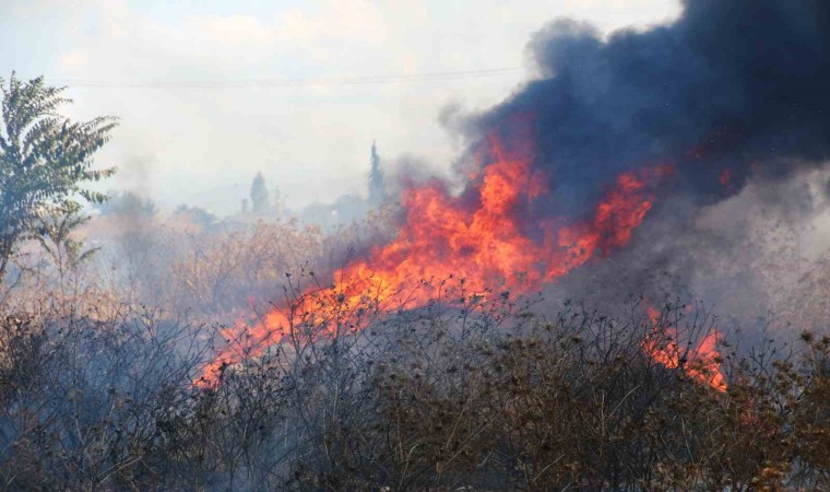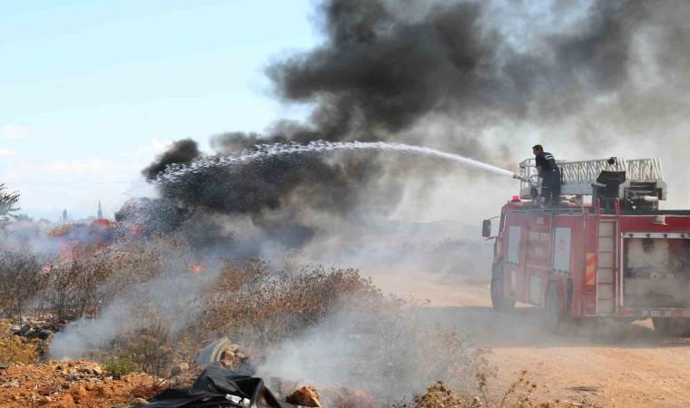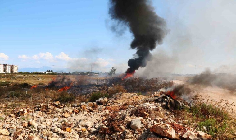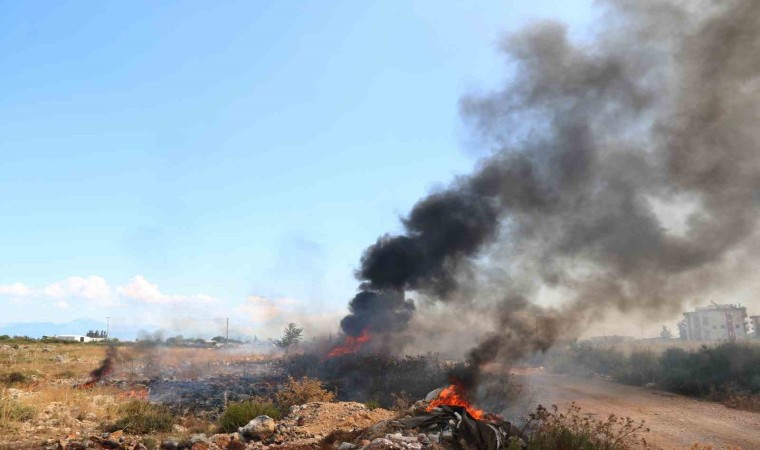 Antalya’da yol kenarındaki boş araziye bırakılan çöplerin tutuşmasıyla başlayan yangın otluk alana sıçradı. Gökyüzünün siyaha büründüğü yangın, 30 dakikada söndürülerek kontrol altına alındı.