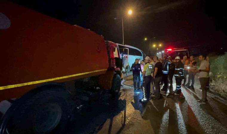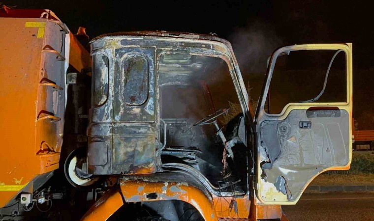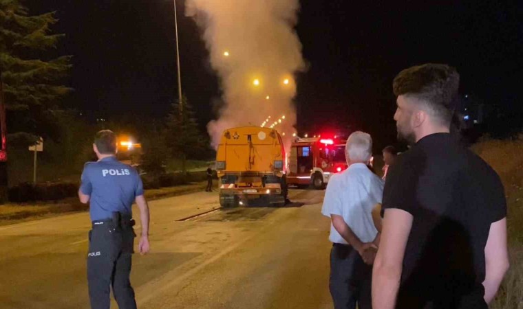Samsun’da yol süpürme aracı yanarak kullanılamaz hale geldi.