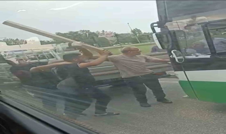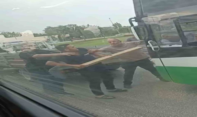 Bursa’da çıkan yol tartışmasında, iki sürücü birbirlerine kalaslarla saldırdı. O anlar kameraya yansırken, kavgayı çevredekiler güçlükle ayırdı.
