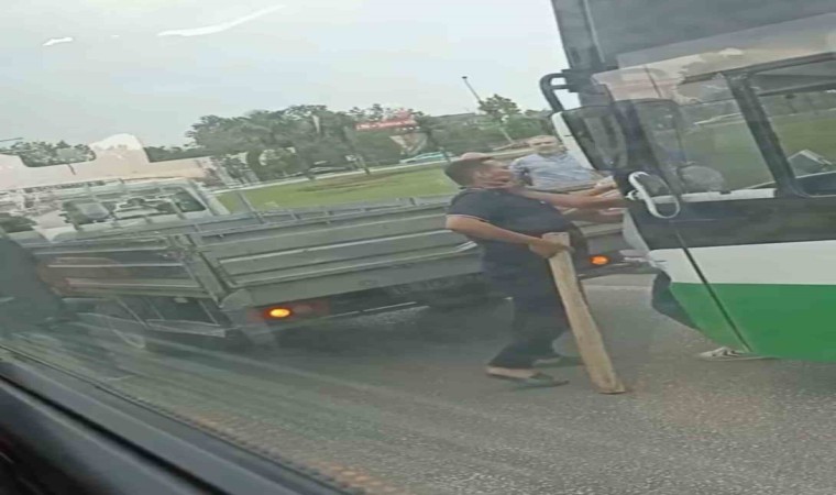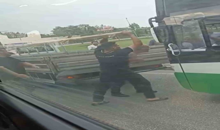 Olay, merkez Osmangazi ilçesi Acemler mevkiinde meydana geldi. İddiaya göre, yol verme meselesi nedeniyle araçtan inen bir sürücü kendisine yol vermeyen kamyonet şoförü ile tartışmaya başladı. İkili arasında artan tansiyon kavgaya dönüşünce iki sürücü birbirlerine kalasla vurmaya başladı. O anlar kameraya saniye saniye yansırken, kavgayı çevredekiler güçlükle ayırdı.