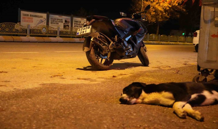 Edirne’de seyir halindeyken aniden önüne çıkan başıboş sokak köpeğine çarpan motosiklet sürücüsü ölümden döndü.