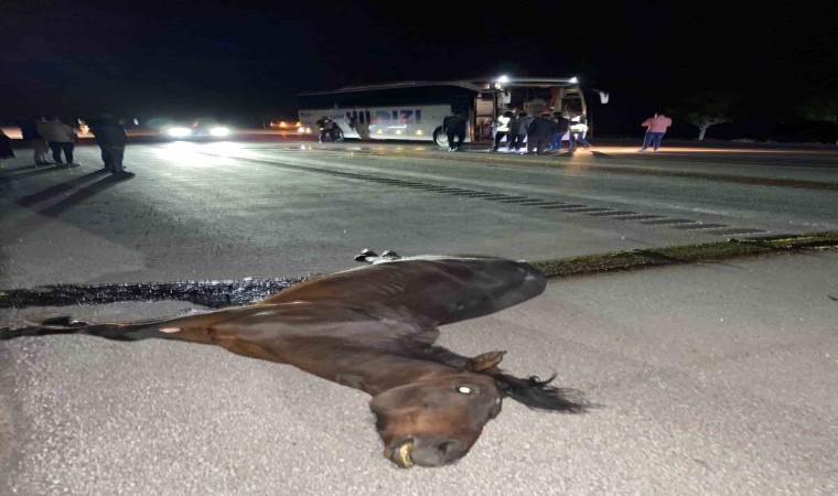 Bitlis’in Tatvan ilçesinde aniden yola çıkan at, bir yolcu otobüsünün çarpması sonucu telef oldu.