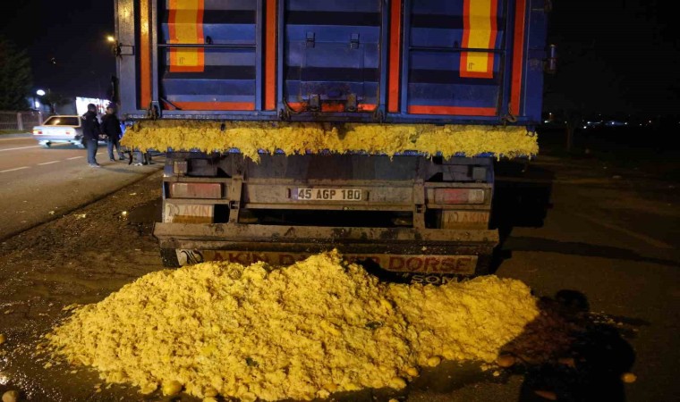 Muğla’nın Yatağan ilçesinden yüklediği limon posasını taşıyan kamyon şoförü Saim K., “İlk başta döküldüğünü fark etmedim. Kapak açılmış. Yani çivileri atmış, haberim yoktu. Gece karanlık olduğu için arkadan gelen araç selektör yapınca hemen durdum, fark ettim. Emniyeti aradım. Bilgi verdim durum hakkında” diye konuştu. Kamyon şoförü, jandarma tarafından gözaltına alınırken, kazayla ilgili soruşturma başlatıldı.