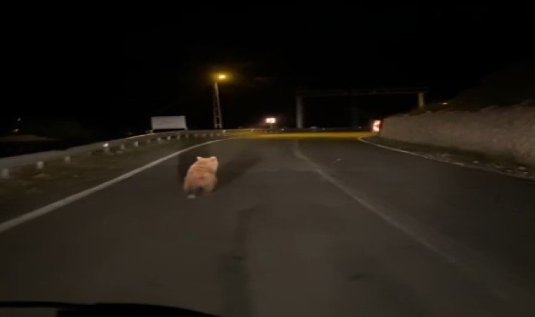 Erzincan’ın Kemaliye ilçesinde yola inen bozayı araçla ilerleyen vatandaşların cep telefonu kamerasına yansıdı.