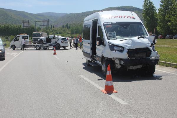 Yolcu minibüsü ile otomobil çarpıştı: 13 yaralı