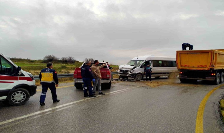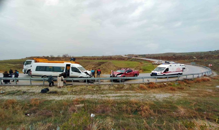 Denizli’nin Pamukkale ilçesinde sürücünün direksiyon hakimiyetini kaybettiği pickup aracın karşı yönden gelen yolcu minibüsüyle kafa kafaya çarpıştığı kazada 5 kişi yaralandı.