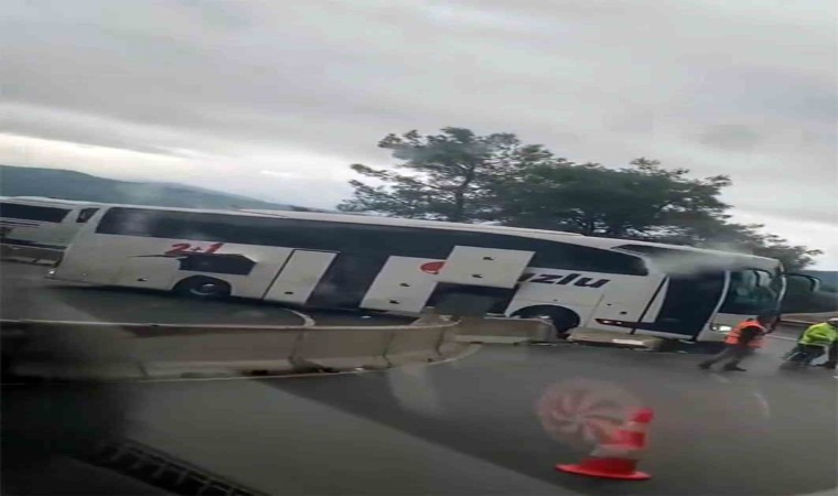 Kara yolunu ikiye ayıran bariyerlere de çarpan otobüs, yolun ortasında durabildi. Kaza nedeniyle otobüste ve polis aracında maddi hasar oluşurken, kaza sonrası yol kısa süreliğine tek şeritten verildi.