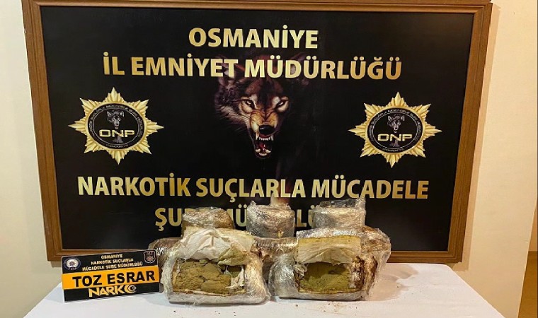 Osmaniye’de, durdurulan otobüsteki M.K.’nin valizinden 12 kilo 700 gram toz esrar ele geçirildi.