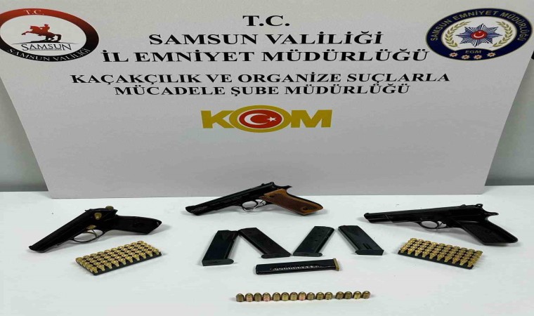 Samsun’da yolcu otobüsündeki bir kişinin üzerinde yapılan aramada 3 adet tabanca ele geçirildi.