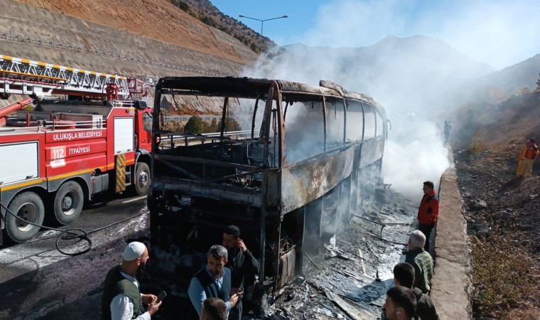 Niğde-Adana Otoyolu üzerinde yolcu otobüsünde çıkan yangında otobüs küle dönerken, yangının erken fark edilmesi faciayı önledi.
