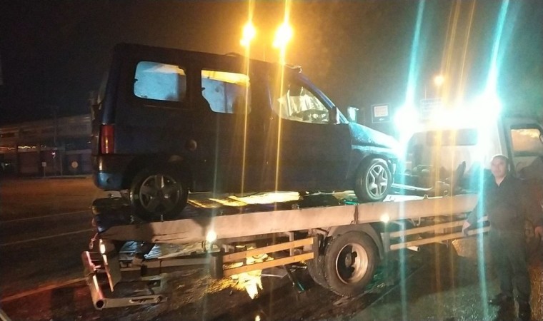 Kazada hurdaya dönen hafif ticari araç çekici vasıtasıyla otoparka çekildi.