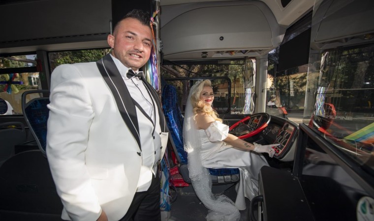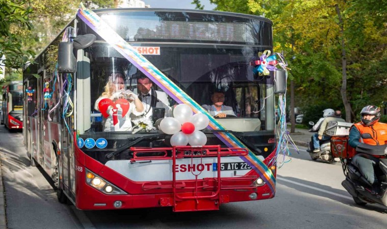 İzmir Büyükşehir Belediyesi ESHOT Genel Müdürlüğü bünyesinde şoför olarak görev yapan Yeliz Önemli (40) ile Burak Bademli (38), hayatlarını birleştirme kararı aldı. Bornova bölgesinde çalışan çift, nikahlarına da yolcu otobüsü ile geldi. Yeliz Önemli, yolcu taşırken kullandığı 249 numaralı otobüsü gelin aracına dönüştürüp, direksiyona da kendi geçti. Önce meslektaşı sonra da eşi olan Bademli’yi de yanına alan gelin, kendi nikahına gitmek için direksiyonu bu kez Bornova Nikah Dairesi’ne kırdı.