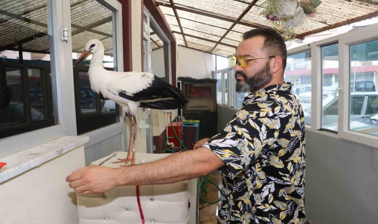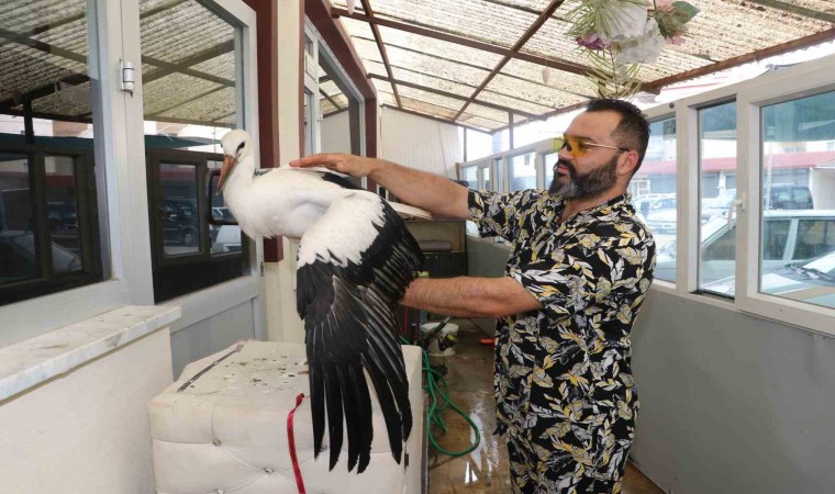 Amasya’nın Taşova ilçesinde yol kenarında bitkin halinde bir leyleğe rastlayan Aykut Temiz, sevimli dostunu her gün bir kilo ciğerle besledi.
