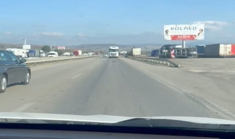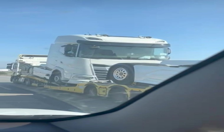 Amasya’da yolda geri gider gibi görünen tır vatandaşları şaşırttı. O tırın başka bir tırın üstünde olduğu ise yakınlaşıp sollama yapılınca anlaşıldı.