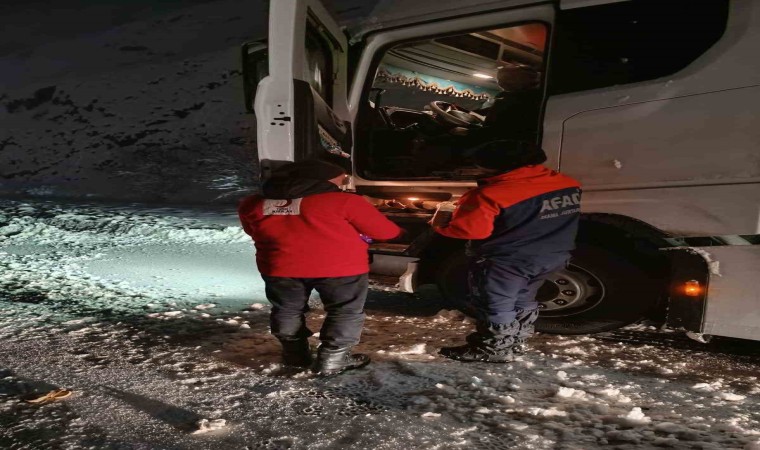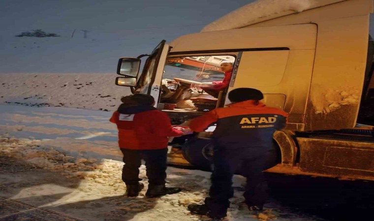 Bingöl’de yolda kalan sürücü ve yolculara ekipler tarafından kumanya dağıtıldı.