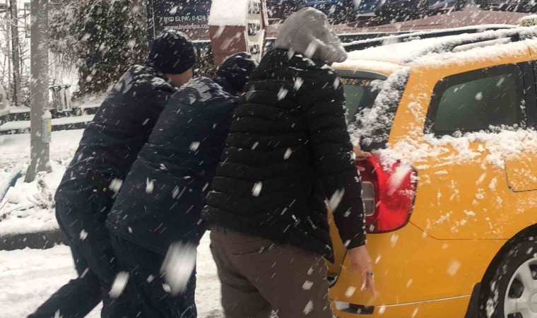 Elazığ’da gün boyu etkili olan yağmur, kara dönüştü. Kısa sürede etkili olan kar yağışı sonrasında ilk olarak bin 200 rakımlı tarihi Harput Mahallesi beyaza büründü. Kar yağışına hazırlıksız yakalanan sürücüler yolda kaldı. Sürücülerin imdadına ise Harput Jandarma Karakol Komutanlığı ekipleri yetişti. Jandarma ekipleri, araçları iterek güvenli noktaya alırken sürücülerin yetersiz kaldığı durumda ise direksiyona geçti.