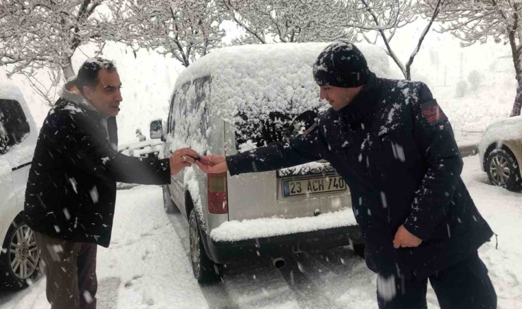 Elazığ’ın tarihi Harput Mahallesi’nde etkili olan kar yağışı sonrasında yolda kalan sürücülerin imdadına jandarma ekipleri yetişti.