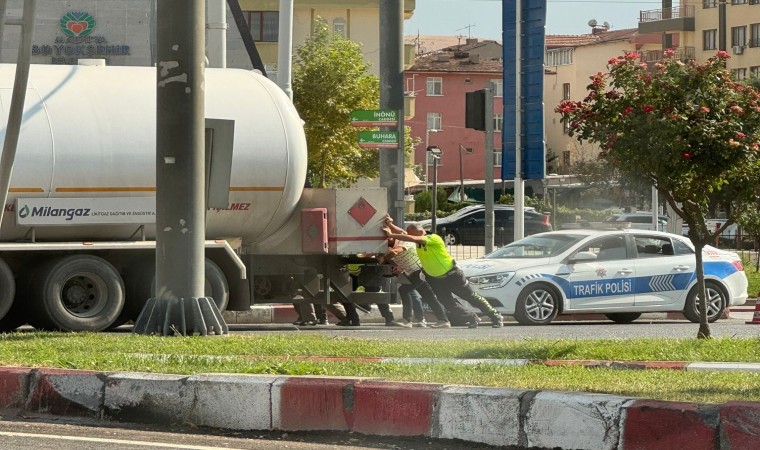 Malatya’da, çevreyolu üzerinde yaptığı arıza nedeniyle yolda kalarak trafik yoğunluğuna neden olan yakıt tankeri polis ekiplerinin müdahalesiyle yol kenarına alındı.