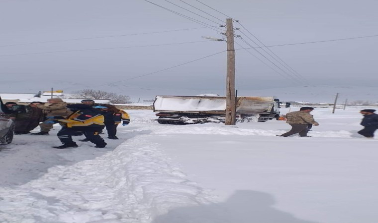 Van’ın Özalp ilçesinde etkili olan kar yağışı nedeniyle yolda kalanların imdadına belediye ekipleri yetişti.