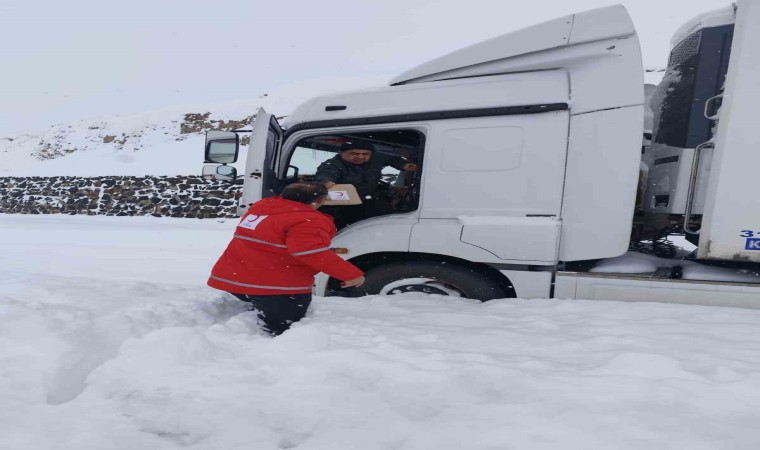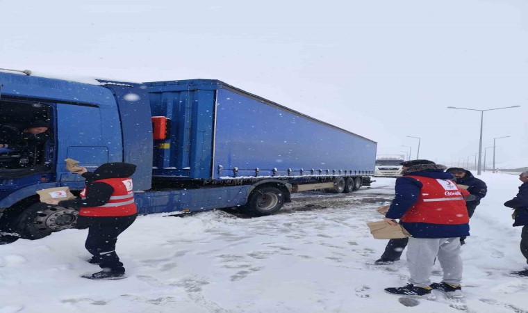 Erzurum’da yoğun kar yağışı nedeniyle yolda kalanların yardımına yetişen Türk Kızılay Erzurum Afet Müdahale Merkezi ekipleri, vatandaşlara ikramlık malzemeler dağıttı.