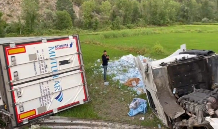 Çorum’un Kargı ilçesi D-100 karayolunda meydana gelen kazada 2 tır peş peşe yoldan çıkarak çeltik tarlasına devrildi.