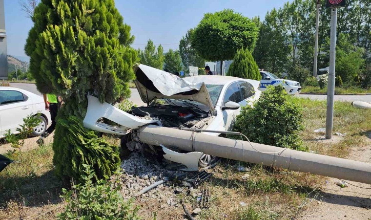 Yoldan çıkan otomobil, elektrik direğine çarptı: 3 yaralı
