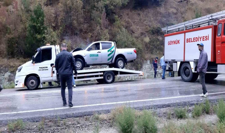 Kaza, Mudurnu ilçesinde meydana geldi. Edinilen bilgiye göre, Kavakaltı mevkiinde E.Y. idaresindeki 14 FJ 884 plakalı Bolu Orman Bölge Müdürlüğü’ne ait pikap, yağışın etkisiyle kayganlaşan yolda kontrolden çıktı. Sürücüsünün direksiyon hakimiyetini kaybettiği pikap, yol kenarındaki taş duvara çarparak yan yattı. Kazada 4 orman personeli yaralandı. Durum 112 Acil Çağrı Merkezi’ne bildirildi. İhbar üzerine bölgeye sağlık ve jandarma ekipleri sevk edildi. Olay yerine gelen sağlık ekipleri tarafından yaralılar yapılan ilk müdahalenin ardından hastaneye kaldırıldı. Kaza nedeniyle yol trafiğe kapandı. Bir süre kontrollü geçiş sağlanan bölgede, aracın kaldırılmasının ardından trafik normale döndü.