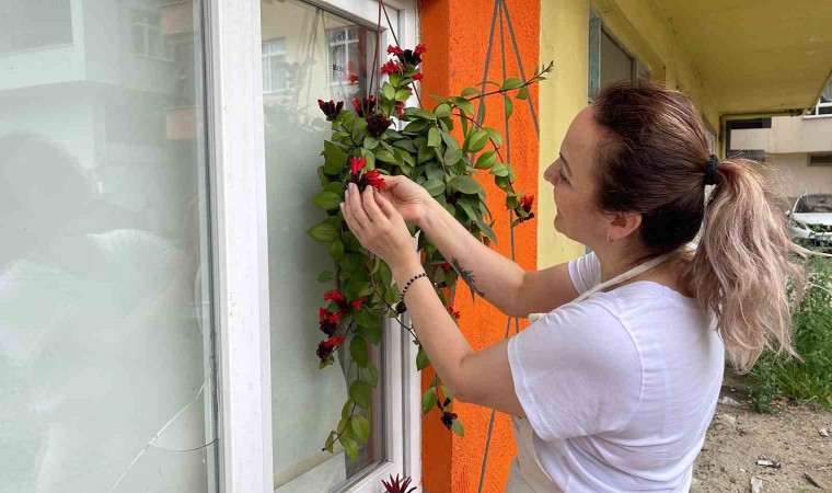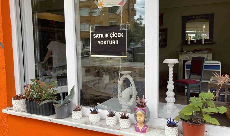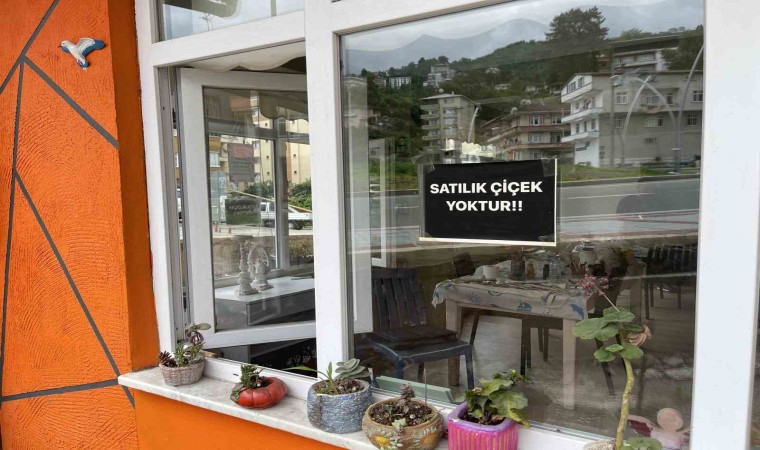 Rize’de bir sanat atölyesinde eğitmenlik yapan 48 yaşındaki Şaduman Öz, atölyenin penceresinde gözü gibi baktığı çiçekleri yoldan geçen herkesin istemesi üzerine cama "Satılık çiçek yoktur" yazısı astı.