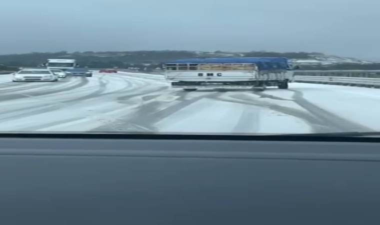 Bursa İznik’te gece saatlerinden itibaren yoğun kar yağışı etkisini gösterdi. İznik-Yenişehir yolunda oluşan buzlanma nedeniyle trafik durma noktasına geldi. Buz pistine dönen yolda seyir halinde olan bir kamyonet ise adeta dans ederek ilerledi. Kamyonetin arkasında seyir halinde olan bir otomobil sürücüsü ise o anları cep telefonu ile kayıt altına aldı.