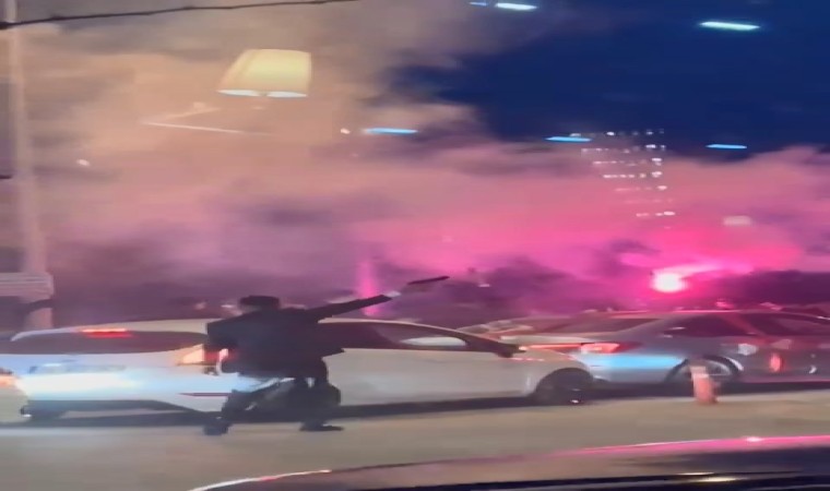 Diğer bir görüntüde ise Mevlana Mahallesi Çevre Yolu üzerinde seyir halinde olan düğün konvoyundakiler, ışıklarda meşale yakıp silahla havaya rastgele ateş etti.