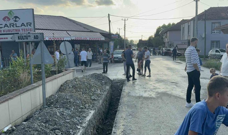 Düzce’de köyden geçen doğalgaz hattının kendi evlerine de ulaşmasını isteyen Bostanlık köyü sakinleri, yolu trafiğe kapatarak eylem yaptı.
