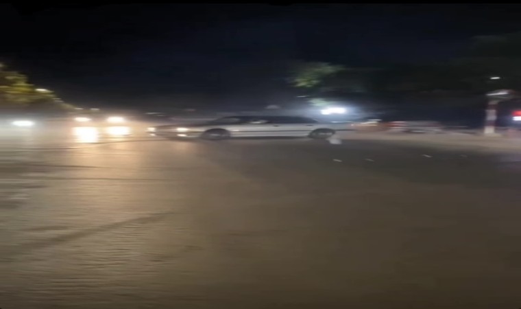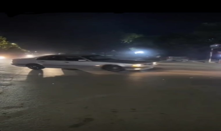 Tuzla’da caddeyi kapatan otomobil sürücüsü drift attı. O anlar cep telefonu kamerasına yansıdı.