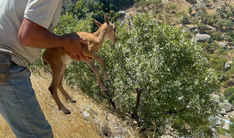 Tunceli’nin Çemişgezek ilçesinde yolunu kaybedip yerleşim alanına gelen yavru dağ keçisi, vatandaşlar tarafından yakalanıp tekrar yaşam alanına bırakıldı.