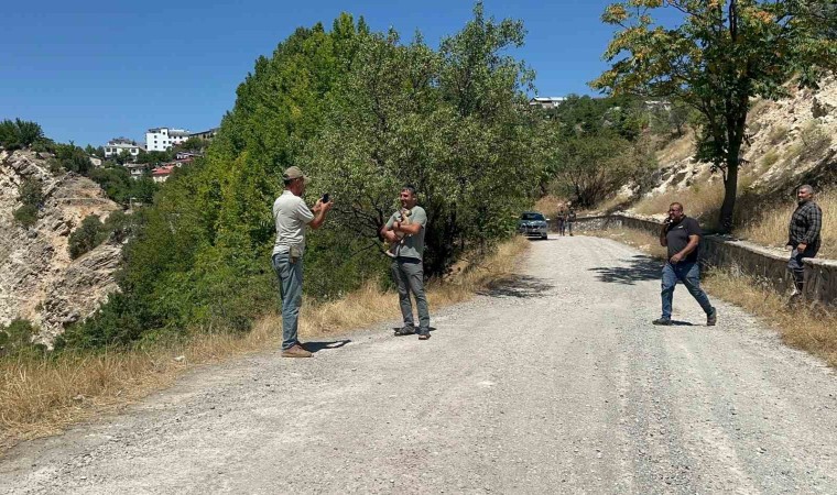 Çemişgezek ilçesinin yüksek rakımlı bölgelerinde yaşayan dağ keçileri, mahallelere kadar inmeye başladı. Yavru keçilerden bir tanesi ise yolunu kaybedip yerleşim alanlarına kadar geldi. Kısa sürede yakaladıkları yavru dağ keçisinin sağlıklı olduğunu gören vatandaşlar, yavruyu yolun altında bekleyen annesine kadar götürdü. Yavru dağ keçisinin annesine kavuşma anları kameraya yansıdı.