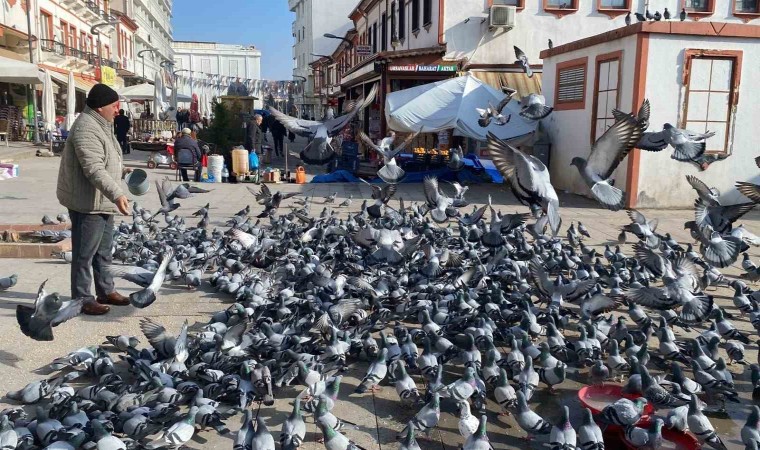 Yozgat’ın tarihi Un Pazarı bölgesinde yaşayan yüzlerce güvercin, esnafın ve çevre halkının desteğiyle hayatta kalıyor.