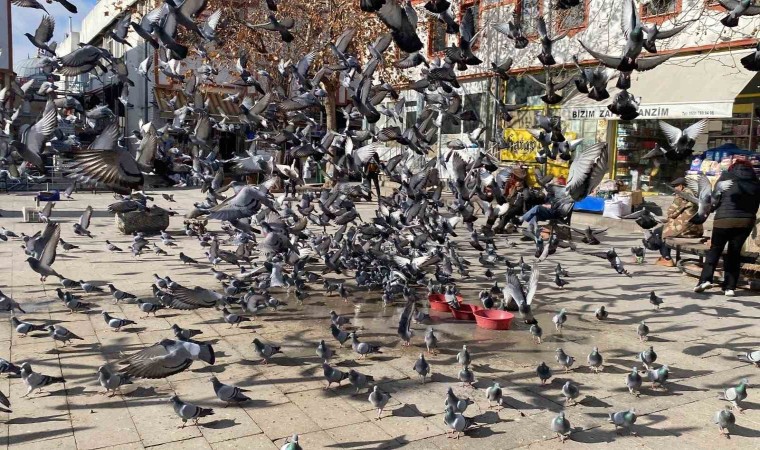 Köylerden çarşıya gelen vatandaşlar da beraberlerinde getirdikleri buğdayı, güvercinlerin beslenmesi için çarşıya bırakıyor. Un Pazarı bölgesindeki binaların çatılarında yuvalanan güvercinler, bu dayanışma sayesinde kışın zorlu şartlarında hayatta kalmayı başarıyor.