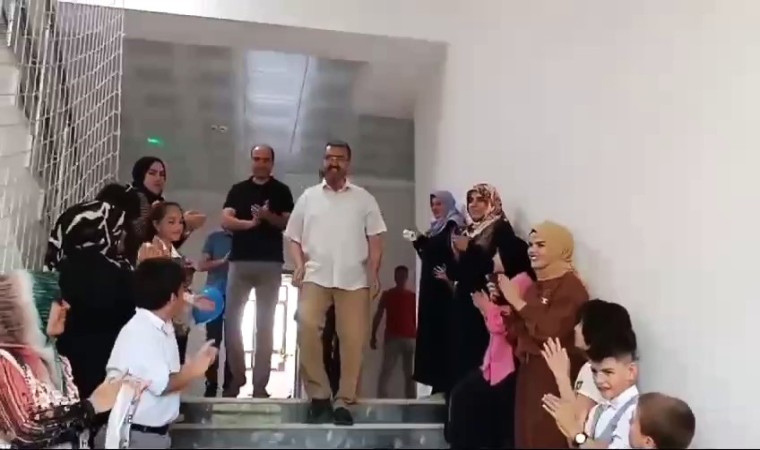 Okul bahçesinde de öğrencilerin sevgi gösterisi devam ederken miniklerin tezahüratları İsrafil Tekin’in duygu dolu anlar yaşamasına neden oldu. Meslektaşları da İsrafil Tekin’i alkışlarla uğurladı.