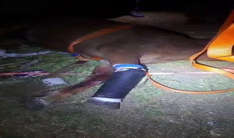 Veteriner hekim tarafından ilk müdahalesi yapılan at tedavi edilerek koruma altına alındı.