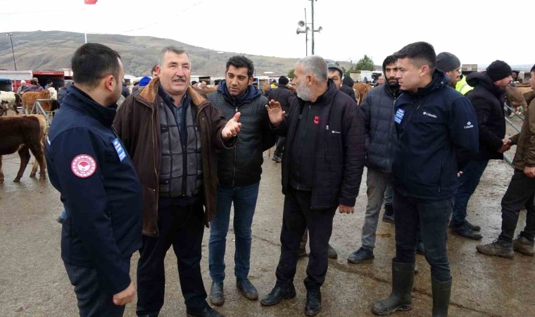 İç Anadolu’nun en büyük canlı hayvan pazarlarından biri olan Sorgun Canlı Hayvan Pazarı’nda sabah saatlerinden itibaren gelen besiciler hayvanlarını satmaya çalışırken, Sorgun İlçe Tarım ve Orman Müdürlüğü ekipleri de veteriner hekimler eşliğinde hayvanların denetimini yapıyor. Ekipler gerekli kontrolleri yaptıktan sonra hayvanların pazara girişlerine izin veriyor. Ekipler pazarda gezerek besicileri hem şap hastalığına karşı bilgilendiriyor, hem de hayvan alımlarında ve nakillerinde kurallara uymaları konusunda uyarıyor.