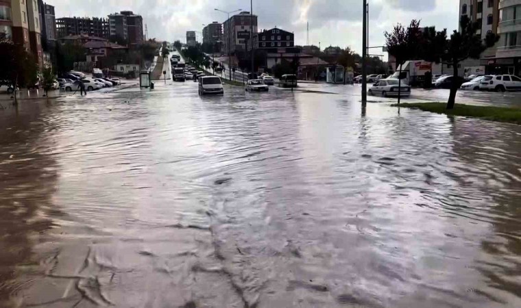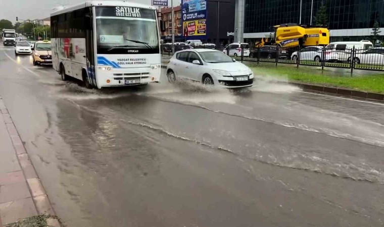 Yozgat’ta öğle saatlerinde başlayan şiddetli yağış nedeniyle göle dönen yollarda sürücüler zor anlar yaşarken ev ve iş yerlerini su bastı.