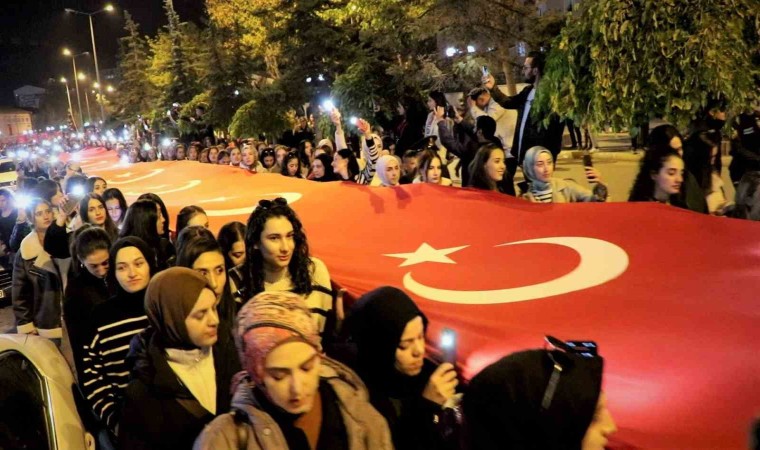 Cumhuriyet Meydanı’nda toplanan vatandaşlar, ellerinde Türk bayrağı ve fenerlerle terminal kavşağına kadar marş söyleyerek yürüdü. Renkli görüntülere sahne olan yürüyüşe, 7’den 70’e çok sayıda vatandaş eşlik etti.