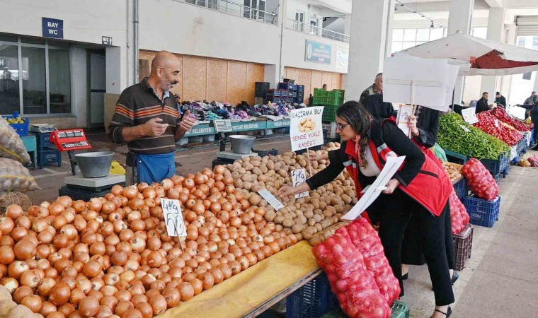 İl Müdür Yardımcısı Sevda Şahin ise kadına yönelik şiddet bir insanlık suçu olduğunu, insanlığa ihanet olduğunu belirtti. Bu ihaneti sona erdirmek için, toplumda farkındalık oluşturmak için, kadınların telefonlarına KADES uygulamalarını indirmelerini, halk pazarına geldiklerini ve farkındalık çalışması yaptıklarını kaydetti. Çeşitli sloganlarla çalışma yaptıklarını dile getiren Şahin, ‘’Esnafımız bu konuda çok duyarlı. Bizlere destek oluyorlar, sloganlar hoşlarına gitti, bunu pazar tezgahlarında görmeleri onları da bizleri de mutlu etti. Oradan alışveriş yapan vatandaşın da bir nebze olsun dikkatini çekti’’ dedi.