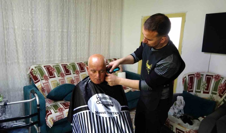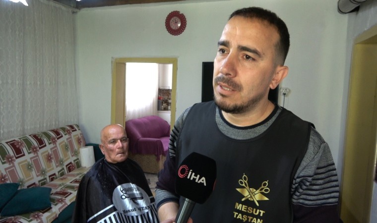 Eşi engelli olduğu için berbere gidemediğini söyleyen Hatice Tomarık “Benim eşim engelli, ayağa kalkamıyor, Mesut oğlum da eve geliyor ve eşimi ücretsiz tıraş ediyor. 15 güne bir eşimi tıraş ediyor. Ona çok teşekkür ediyorum” dedi.