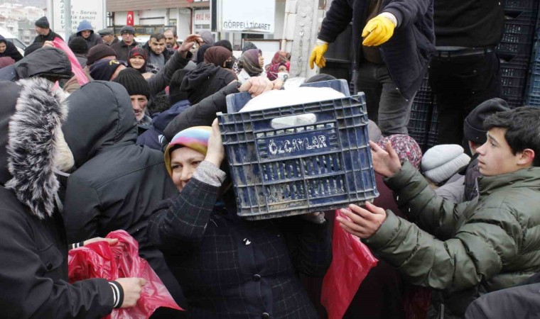 Büyük kısmının kadın ve yaşlıların oluşturduğu kuyrukta bekleyen vatandaşlar, kamyonlarla getirilen sebzelerden alabilmek için birbiriyle yarıştı. Cuma namazı sonrası Fatih Camii önünde biriken kalabalık, dağıtımın başlamasıyla domates, patates, soğan, salatalık ve sarımsaktan oluşan iki kamyon sebzeden alabilmek için yoğun çaba gösterdi.