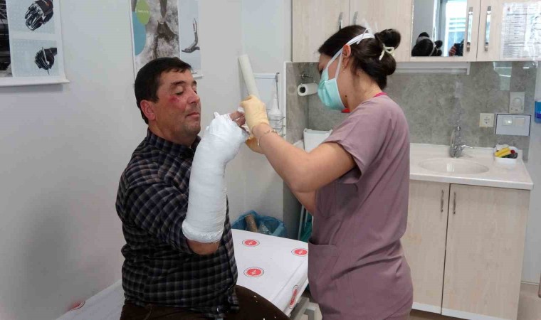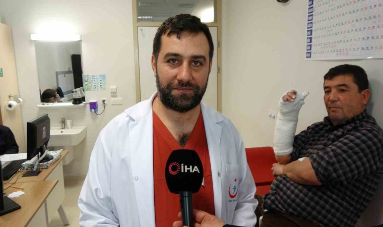 Buzlanma nedeniyle düşerek el bileği kırılan Aydın Aydın, “Egzoz muayenesine gitmiştim, arabamın yanına ilerlerken buzda kaydım, kolumun üstüne düştüm. Bileğim kırıldı” şeklinde konuştu.
