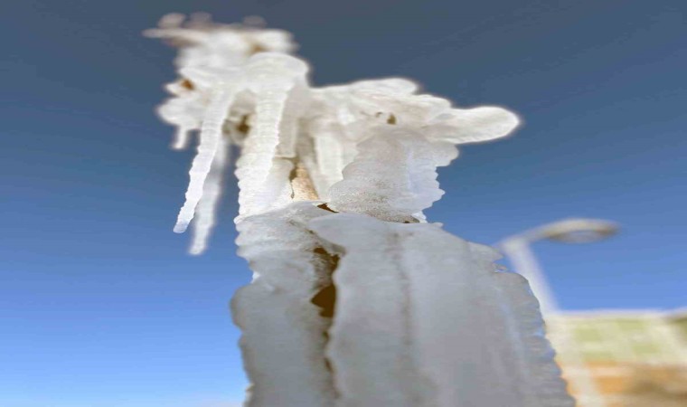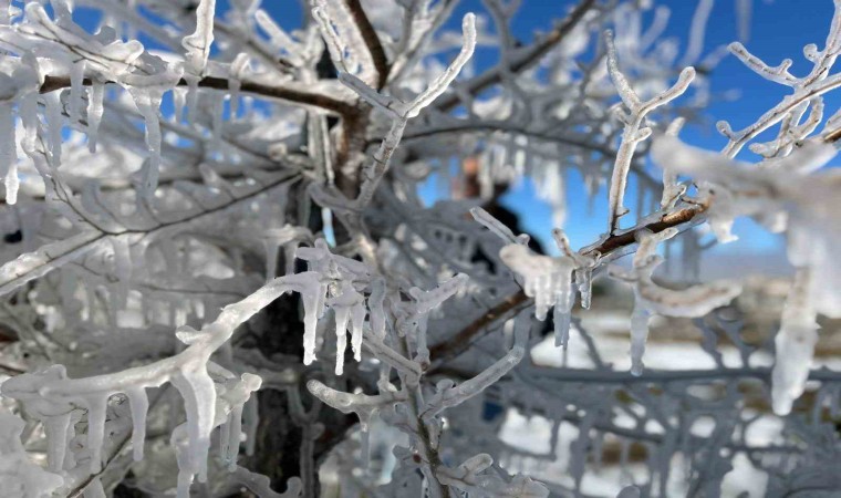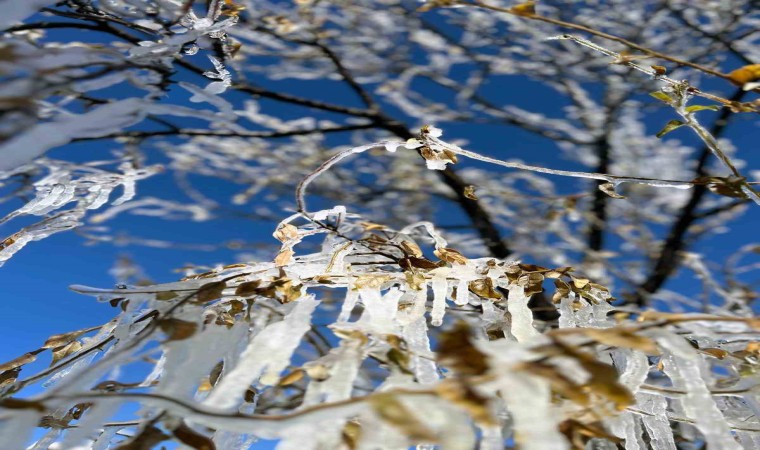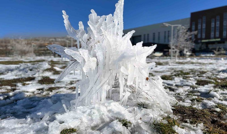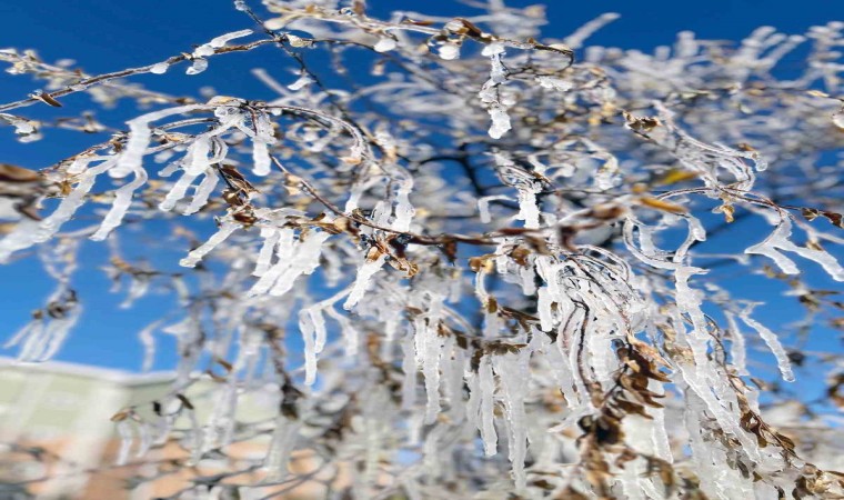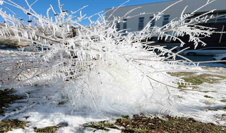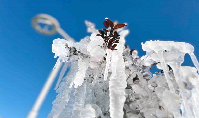Kent genelinde hava sıcaklıklarının sıfırın altına düşmesiyle birlikte ağaç dallarında ve çalılar üzerinde oluşan buz sarkıkları, buzdan heykelleri andırıyor.