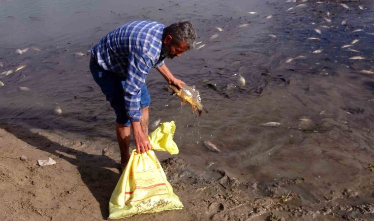Baraja balık toplamak için geldiğini söyleyen köy sakinlerinden Suat İpek ise, “Barajda balıkları bu halde gördük, biz de toplamaya geldik. Canlı olanları toplayacağız. Endişeleniyoruz ama yenilebileceğini öğrendik, ben de 5-6 kilogram balık toplayacağım” diye konuştu.